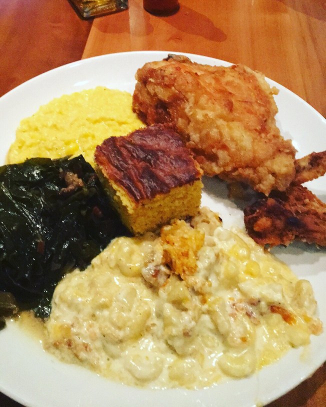 Enjoyed some delicious southern eats at The Kings Kitchen in Charlotte,NC . I found it kinda cool that they are a non-profit and source food from local Carolina farms & purveyors. I had the Pan-Fried Chicken with Mac n Cheese, Collards, Creamed Corn & a chunk of Corn Bread . Everything was seasoned heavily and the chicken in particular was juicy and just so nom nom nom 🍗🍗🍗. The service was a little lackluster but I was too busy enjoying my dinner and company to put to much thought into it . I would definitely come back to enjoy another southern meal with a touch of class .